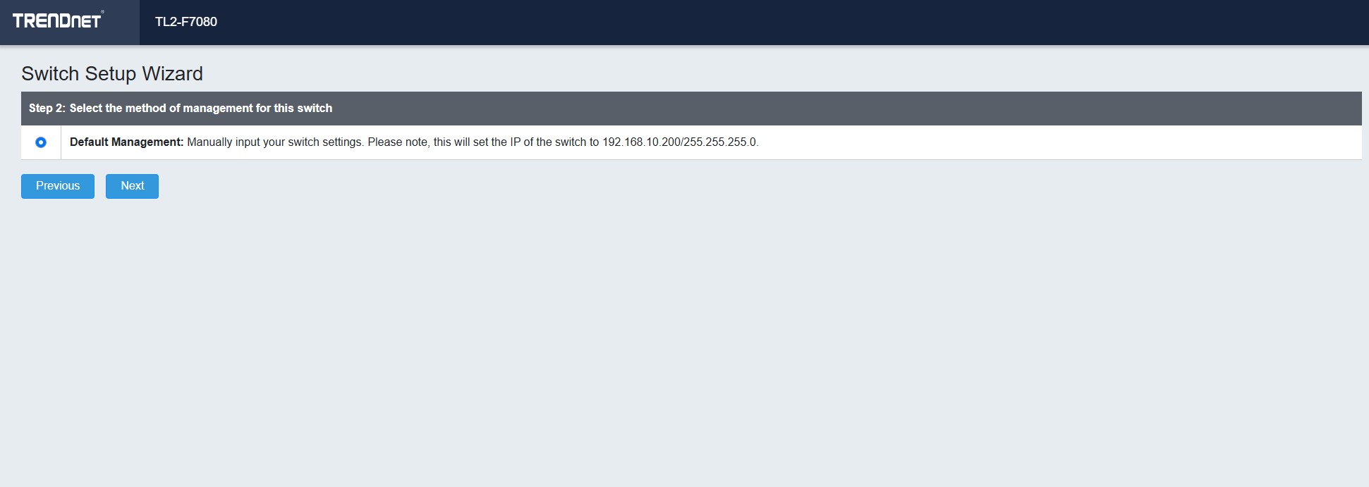 TRENDnet TL2 F7080 Web Management Default Management
