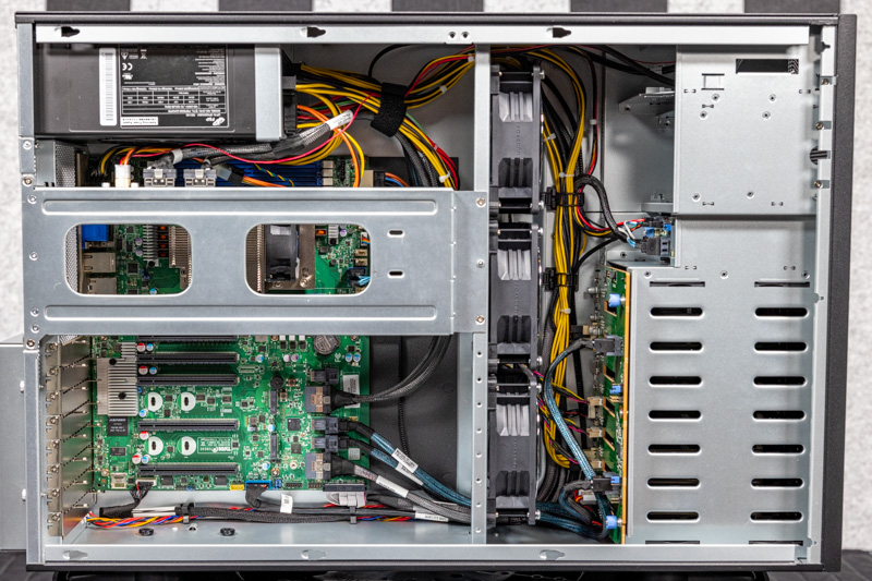 The 2.5″ bays are SATA or NVMe enabled. It is nice to have separate 2.5″ and 3.5″ bays that are hot-swappable in this chassis.