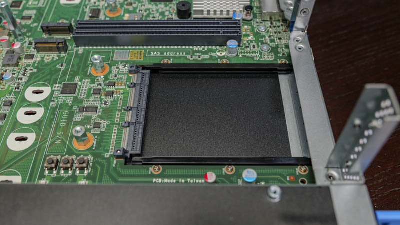 There is an OCP NIC 3.0 slot on the motherboard as well. With the AMD EPYC 7002 CPUs, this is a PCIe Gen4 x16 capable slot. It can therefore run dual 100GbE ports or a single 200GbE port at full speed which is a big change from previous generations.