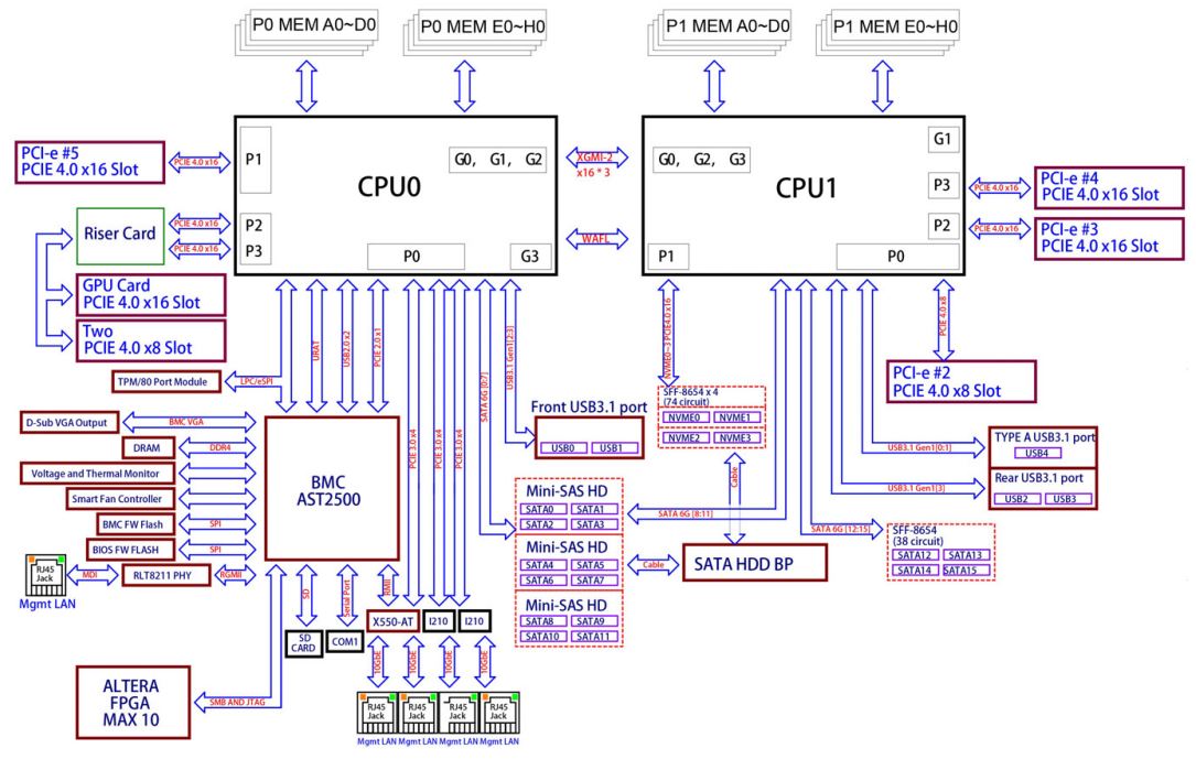 Dual AMD 7002/3 support “high performance vs relatively low cost compared to Intel” & High RAM Support. Tons PCIe Gen 4 ready to be used on 3×8 & 4×16 expansion card. Great front LFF design with 4xNVMe & 2 SFF at the back & the best of them all