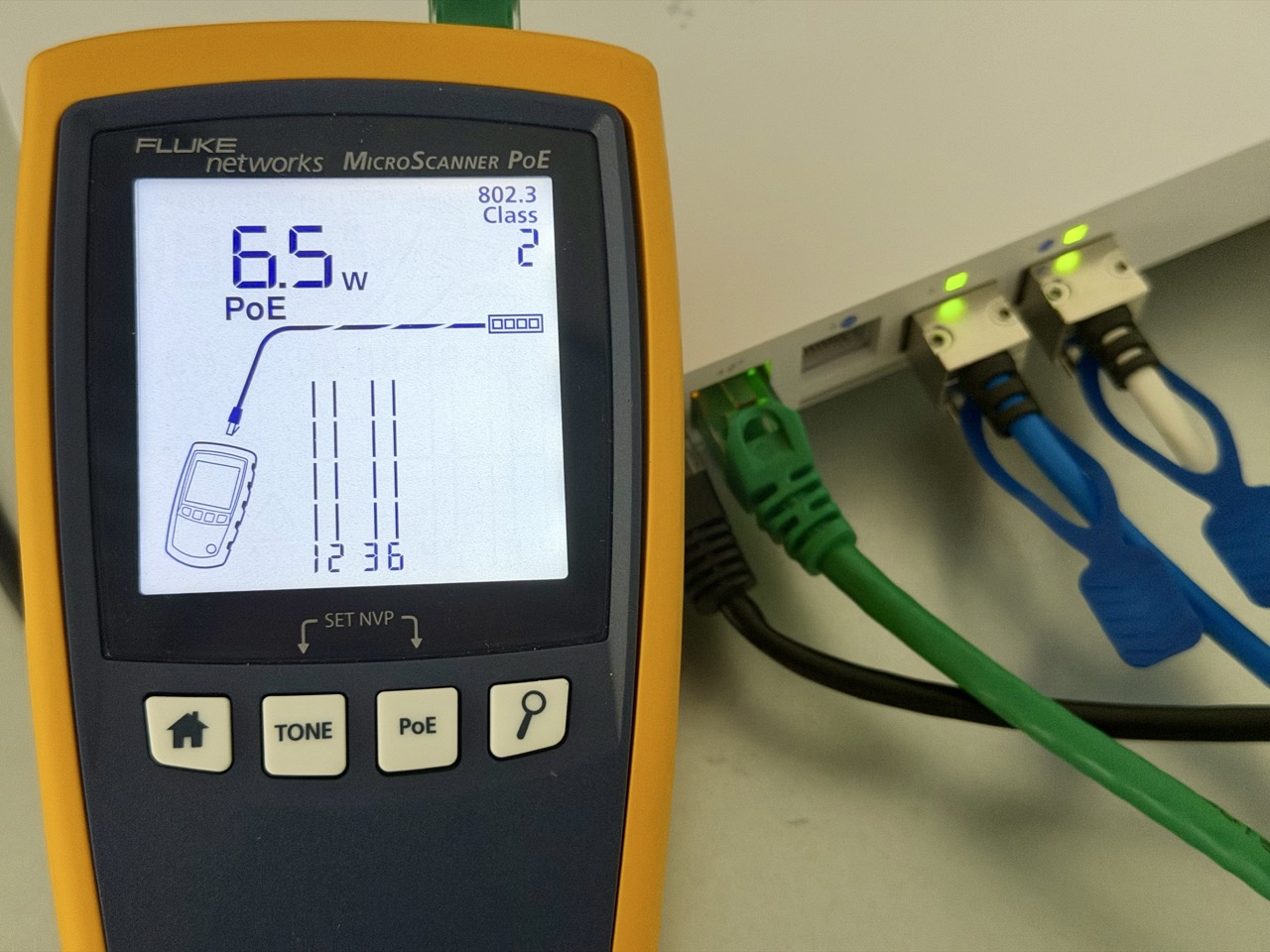 Ubiquiti UniFi UCG Fiber PoE Port With Fluke MicroScanner PoE Large
