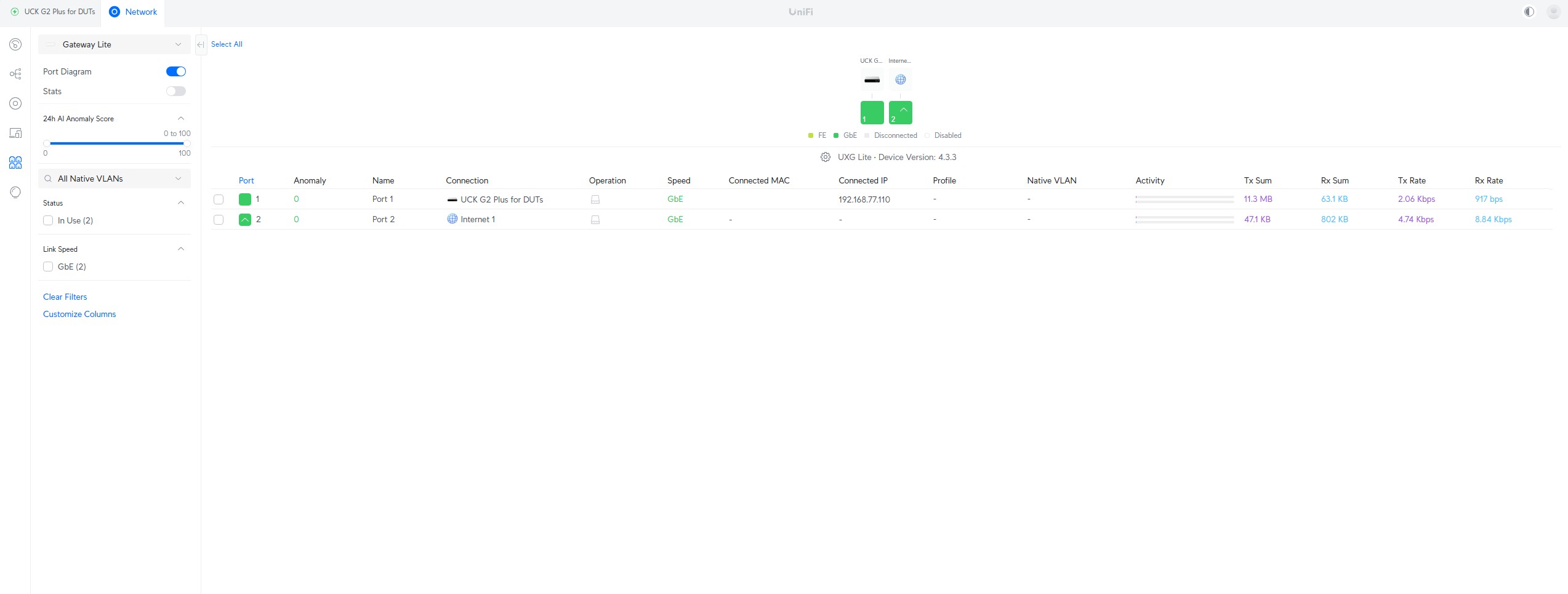 Ubiquiti UXG Lite Port Manager