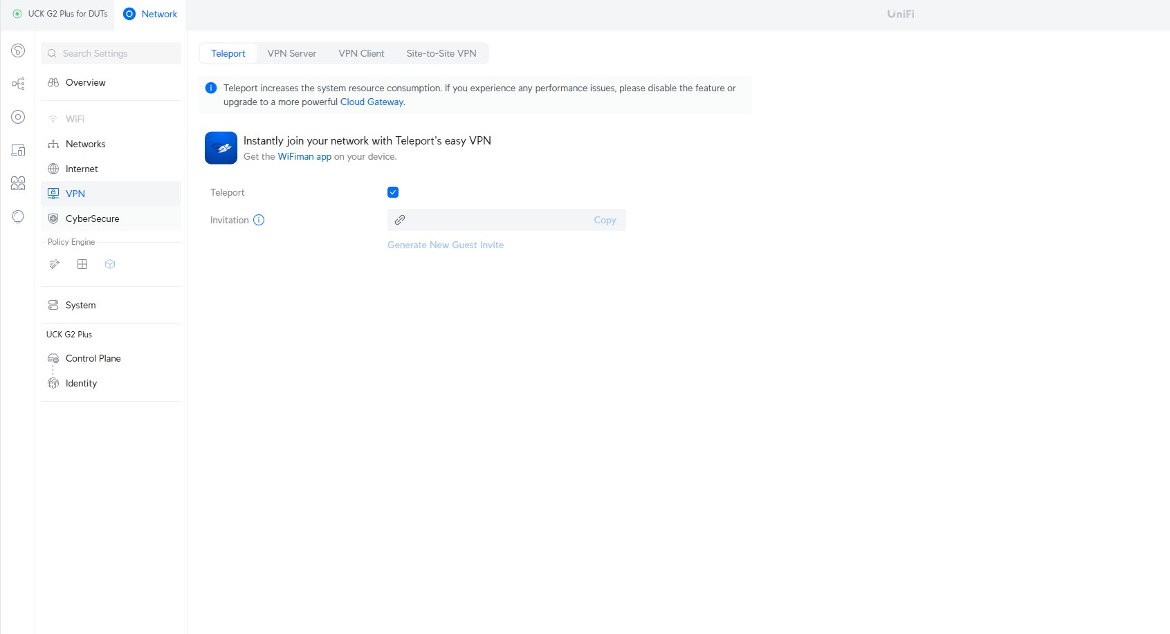 Ubiquiti UXG Lite VPN