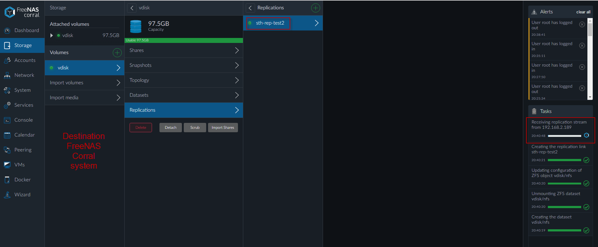 Using new FreeNAS Corral Peering to replicate ZFS datasets between two FreeNAS systems