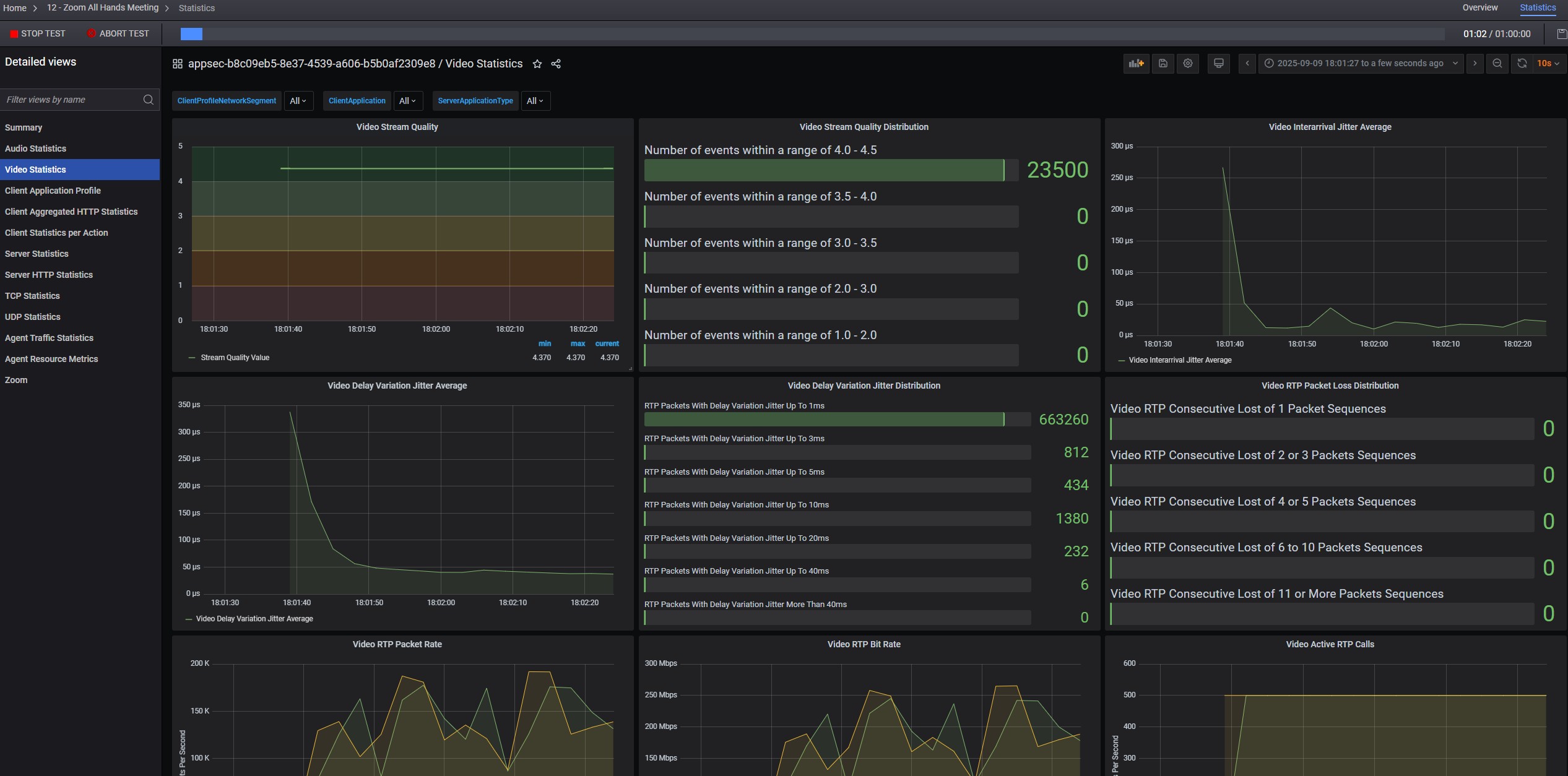 KeySight CyPerf 500 User Zoom All Hands Video Statistics Example