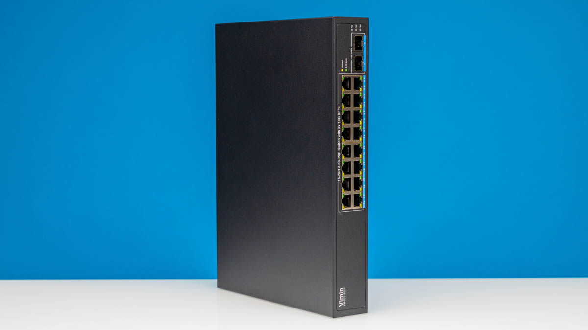 HomeVimin VM-S251602P 16-Port 2.5GbE PoE with 2x 10G Switch ReviewVimin VM S251602P 16 Port 2.5G PoE Switch With 2x 10G SFP+ Front Angled 4