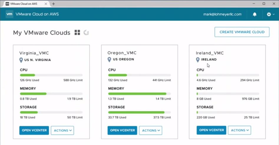 The infrastructure is managed using a standard vSphere Client. One can also use features such as vMotion to live migrate workloads from a company owned VMware deployment to AWS cloud infrastructure.