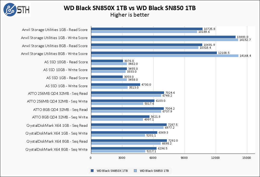 In general, the SN850X is faster than the original SN850. The original SN850 manages to notch victories in portions of Anvil and AS SSD testing, while the SN850X claims victory in everything else.