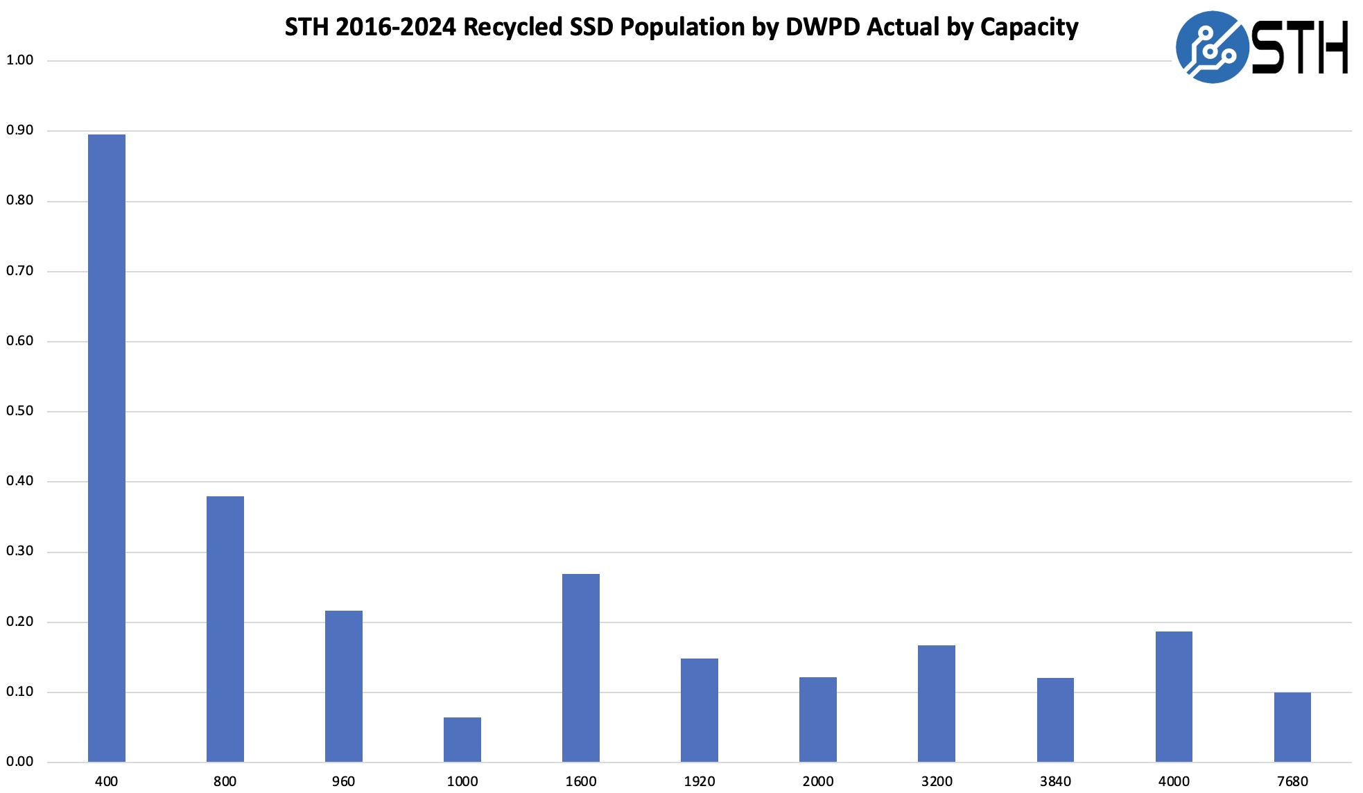 STH 2016 2024 Recycled SSD Population DWPD Actual By Capacity