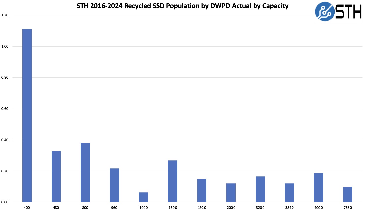 STH 2016 2024 Recycled SSD Population Max DWPD Actual By Capacity