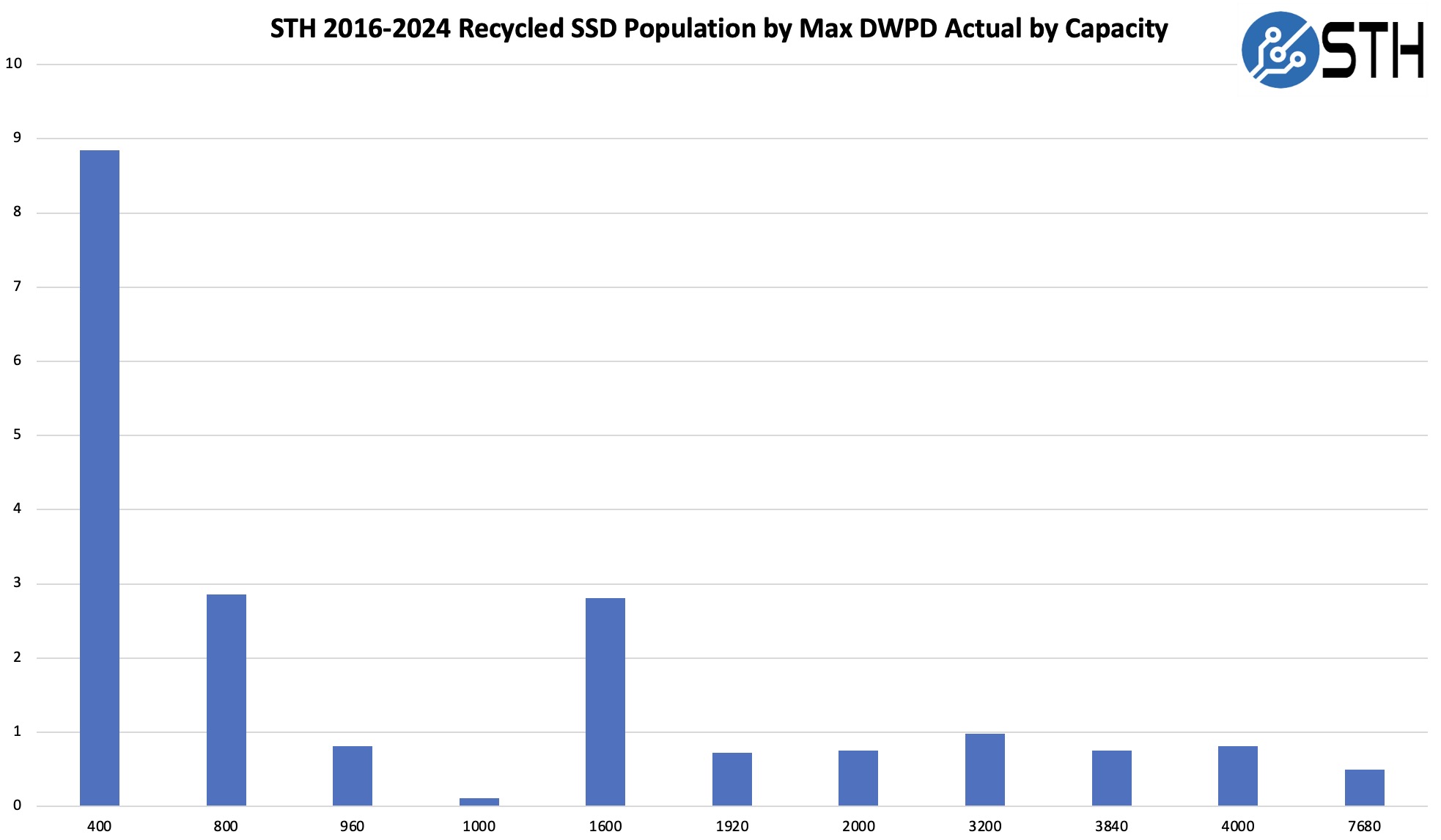 STH 2016 2024 Recycled SSD Population Max DWPD Actual By Capacity