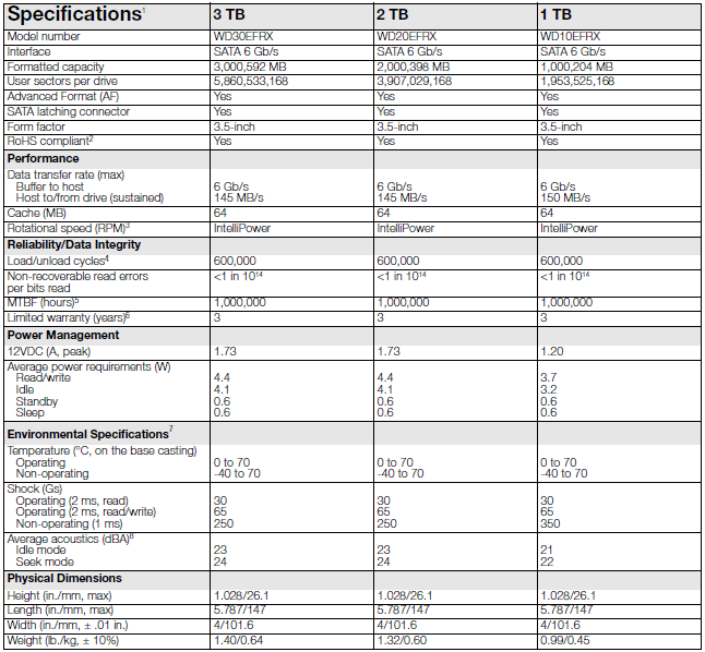 Here are the Western Digital Red series specifications. I do hope to see these in action soon.