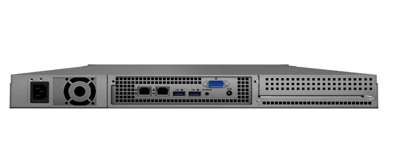 Moving to the rear of the unit we have two RJ-45 gigabit Ethernet ports. There are two USB 3.0 ports and a VGA out port alone with a DC power in port.
