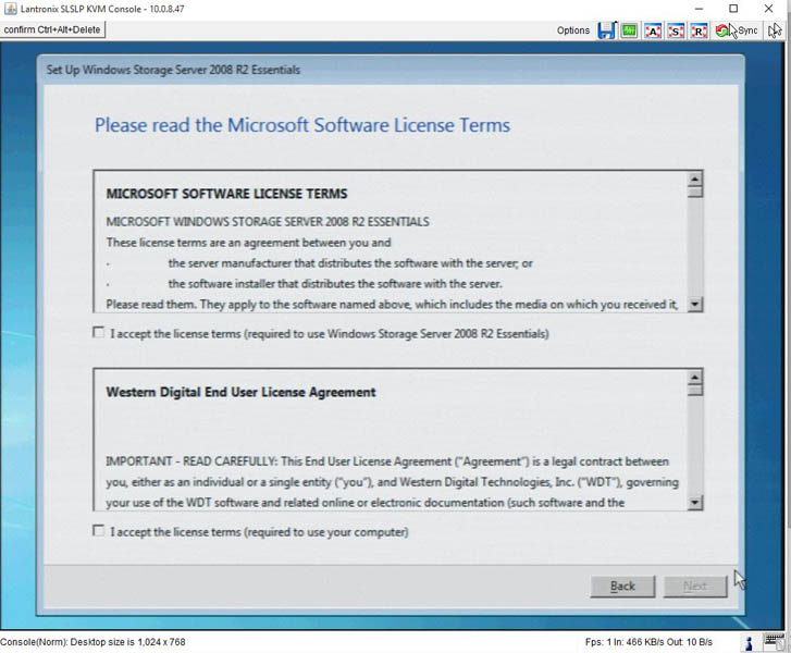 The overall setup experience was very similar to Windows Storage Server 2008 R2 Essentials with a few modifications. For example, there are dual EULAs to click through, one for Microsoft and one for Western Digital.