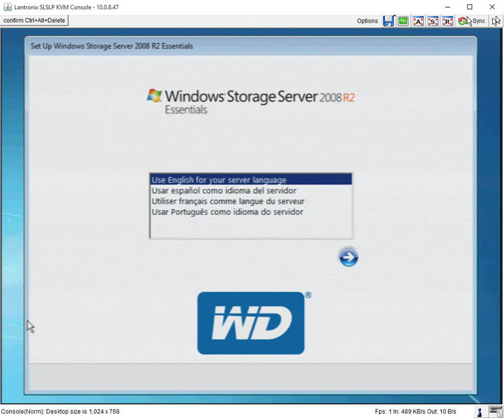 Once we hooked up the Lantronix unit to the rear VGA and USB ports we were able to start our setup of the NAS.