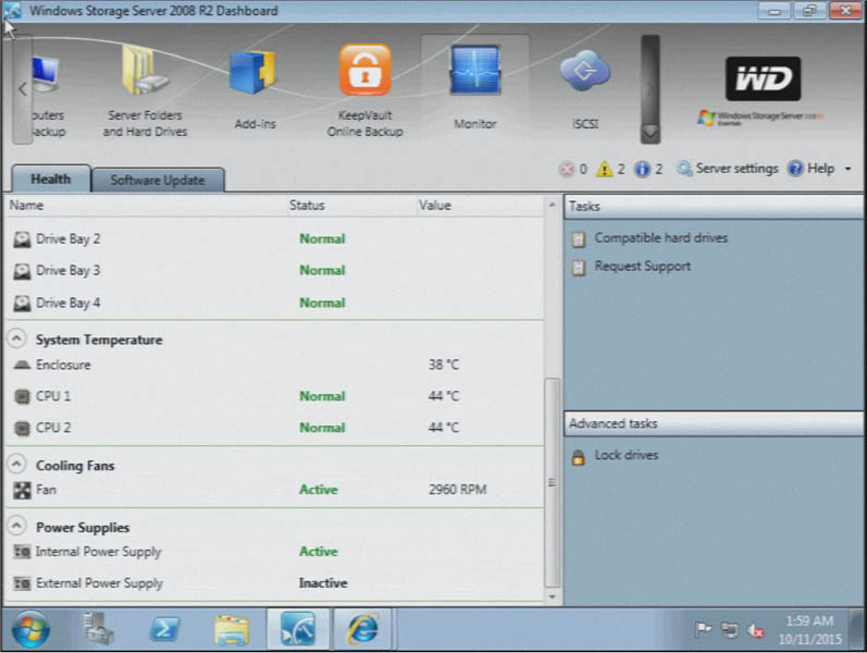 Western Digital has a nice status page and one can get monitoring of the fan speeds, CPU temperatures and etc. due to the Nuvoton chip seen in the motherboard above. For those that remember Windows Home Server the extremely easy to setup experience is similar.