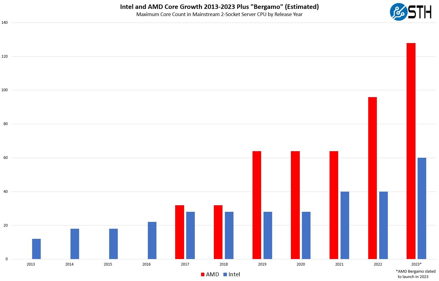 Intel And AMD Core Count Growth For Mainstream Servers 2013 2023