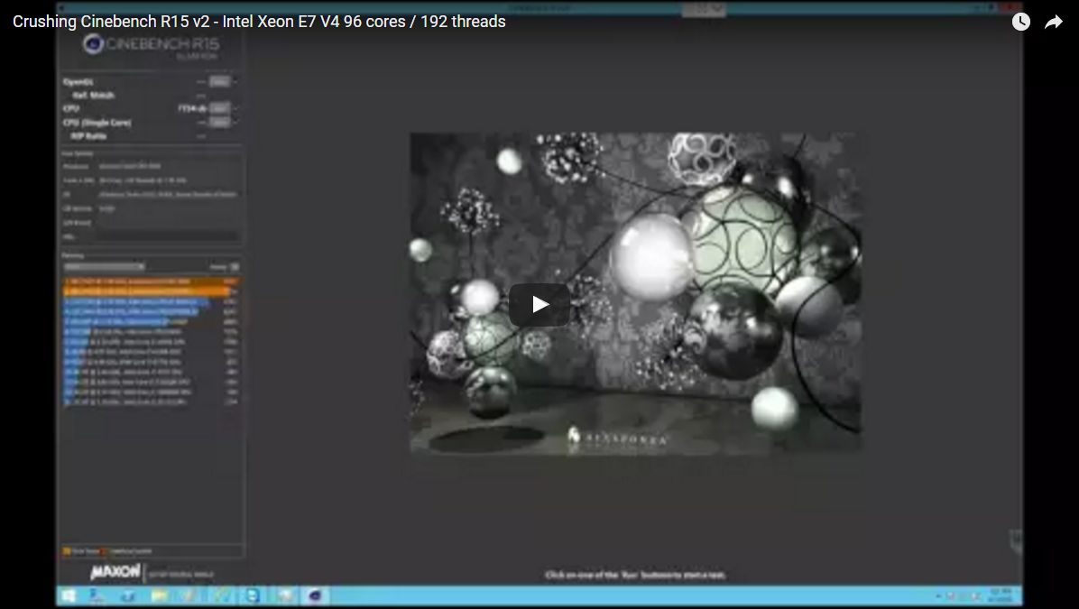 Here is the video titled: Crushing Cinebench R15 v2 – Intel Xeon E7 V4 96 cores / 192 threads: