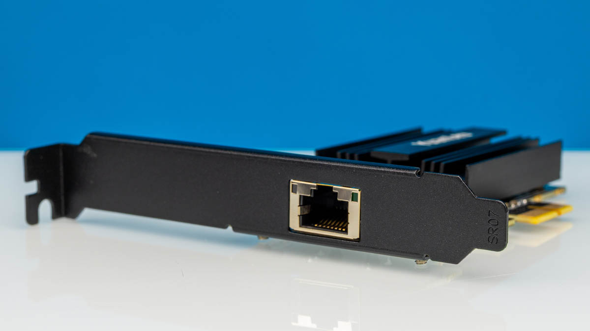 HomeYuanLey AQC113-X1 10Gbase-T PCIe Network Card ReviewYuanLey AQC113 X1 Network Card Front Angled 1